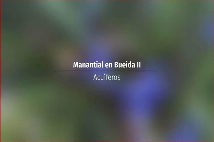 Manantial en Bueida III. Acuífero en Asturias: Cuenca: Norte Unidad Hidrogeológica: Somiedo- Trubia- Pravia Sistema acuifero: Caliza de montaña cántabro-astur Cota: 1120 Naturaleza: Manantial Uso: No se utiliza Perímetro: No ...