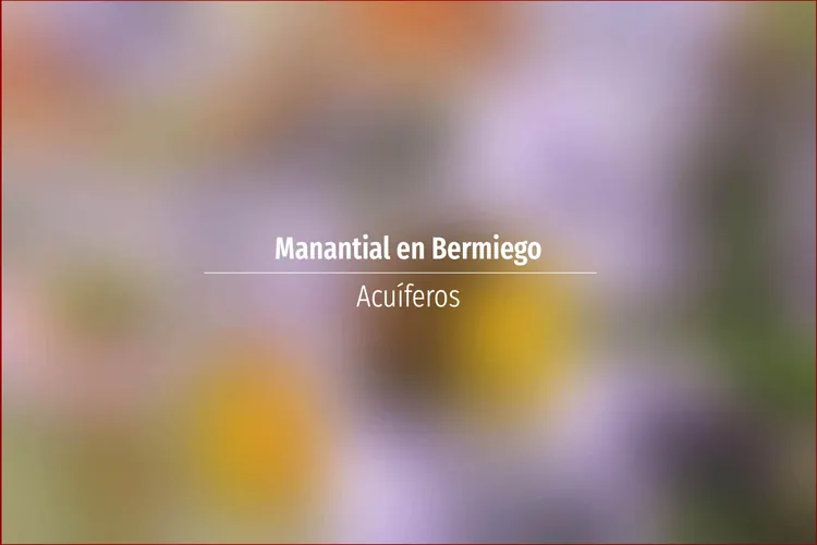 Manantial en Bermiego. Acuífero en Asturias: Cuenca: Norte Unidad Hidrogeológica: Somiedo- Trubia- Pravia Sistema acuifero: Acuífero aislado Cota: 1000 Naturaleza: Manantial Uso: Abastecimiento a núcleos urbanos Perímetro: No ...