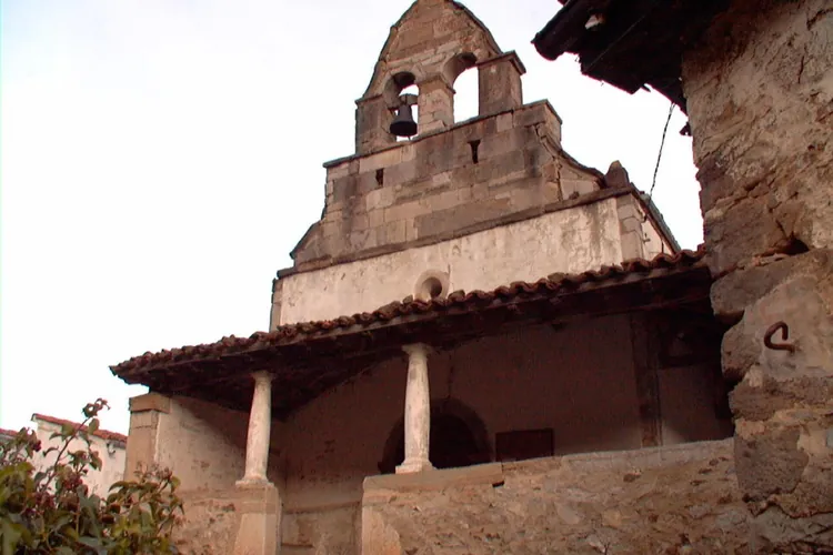 Iglesia de Santa María de Muriellos. Nave única cubierta con madera a dos aguas. Presbiterio cubierto con bóveda de cañón apuntado. Pórtico en el lado sur. Canecillos-ménsulas por el exterior del presbiterio. Conjunto de ...